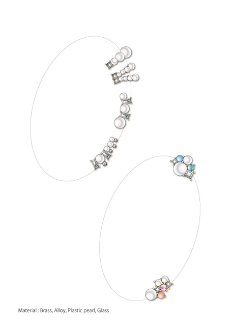 パールのイヤーカフ。角石を使ったモダン寄りとキュート系。