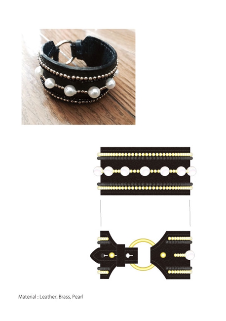 革とアコヤ真珠のブレスレット。こちらはオリジナルのハンドメイドです。