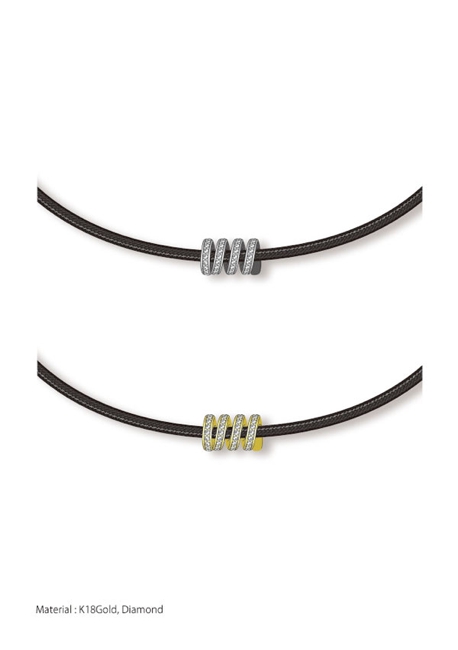 チョーカータイプのネックレスに合わせたヘッド。高級感がありつつアクティブに。